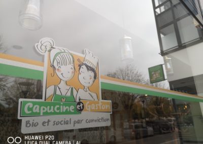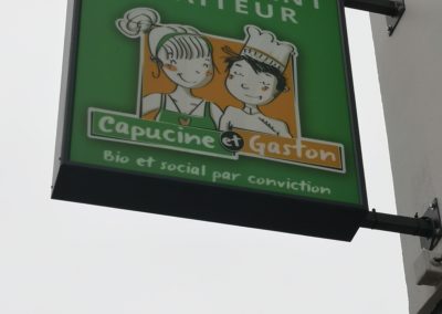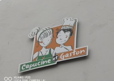 Réalisations de l’ensemble de la signalétique commerciale du Restaurant : Capucine & Gaston à LYON.